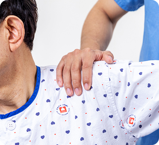 우리 몸에서 가장 많은 움직임을 가진 관절 구조물로, 위팔뼈, 빗장뼈, 복장뼈,