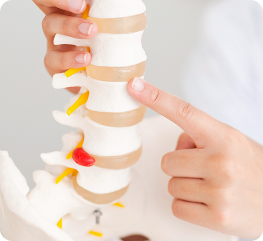 디스크의 변성 및 파열로 인해 디스크 내부 액체의 유출되어 주변 신경과 조직에 압박이 가해지는